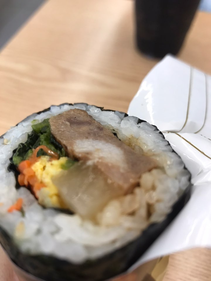 어제 받아온 약을 먹어야 해서 아침으로 대충 김밥을 사먹었습니다. CU 떡갈비김밥 맛있네요.