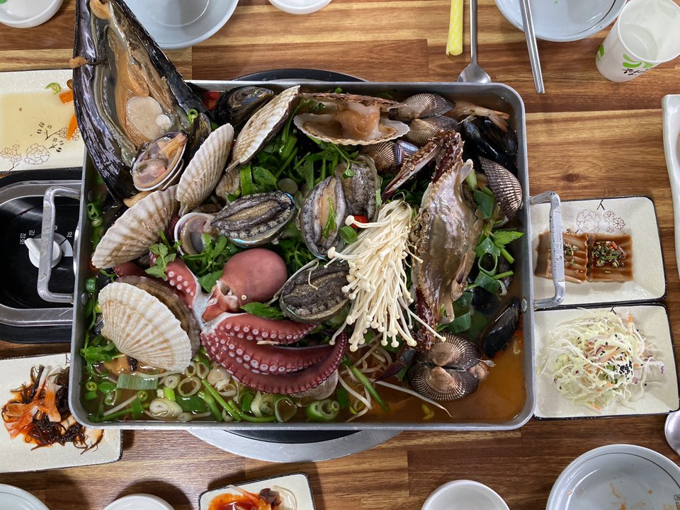 저희는 빨간 매운탕을 생각했지만 먹어보니 약간 맑은 국물이었습니다. 마산에서 오신 형님 말고는 붉고 자극적인 국물에 대한 기대를 하고 먹어서인지 해물탕 자체는 별로였습니다.