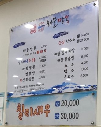 메뉴는 짬뽕2개 짬뽕밥 1개를 시켰습니다.