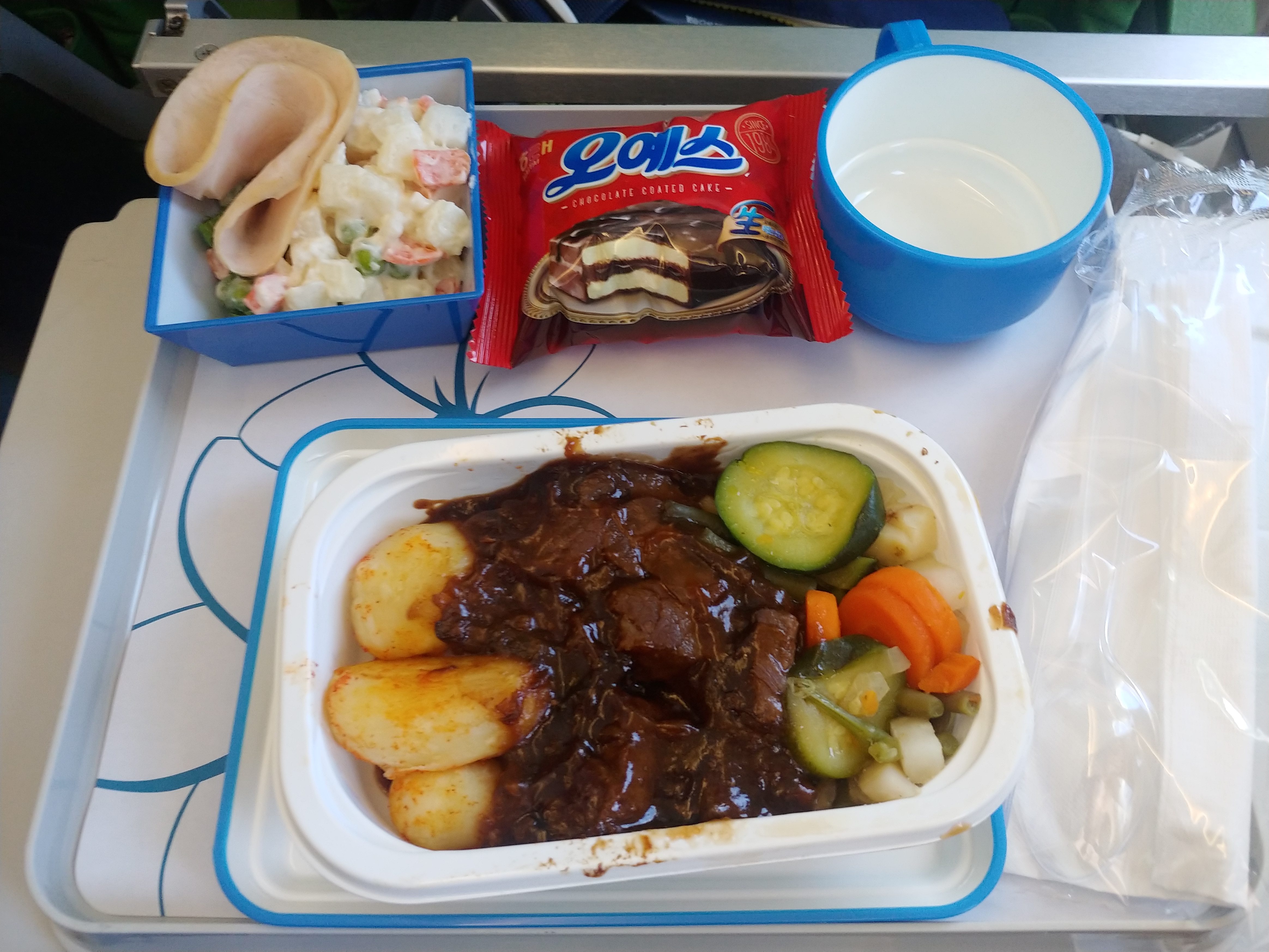 라오항공 기내식 메뉴는 소고기와 생선이 있었는데요, 간이 매우 셉니다.