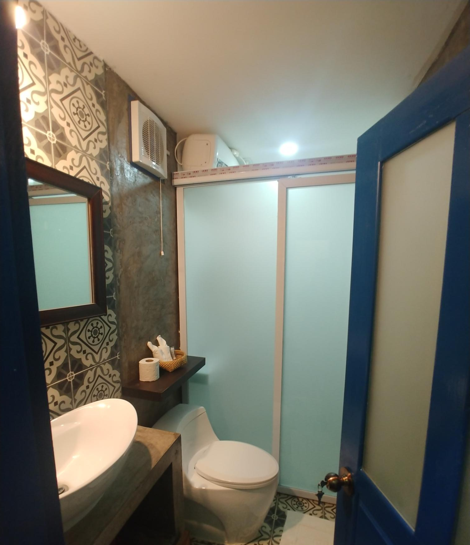 사진엔 없지만 드라이기, 머리 샴푸, 바디 샴푸, 냉장고, TV, 컵, 커피포트 등이 있으니 요긴하게 쓰세요.