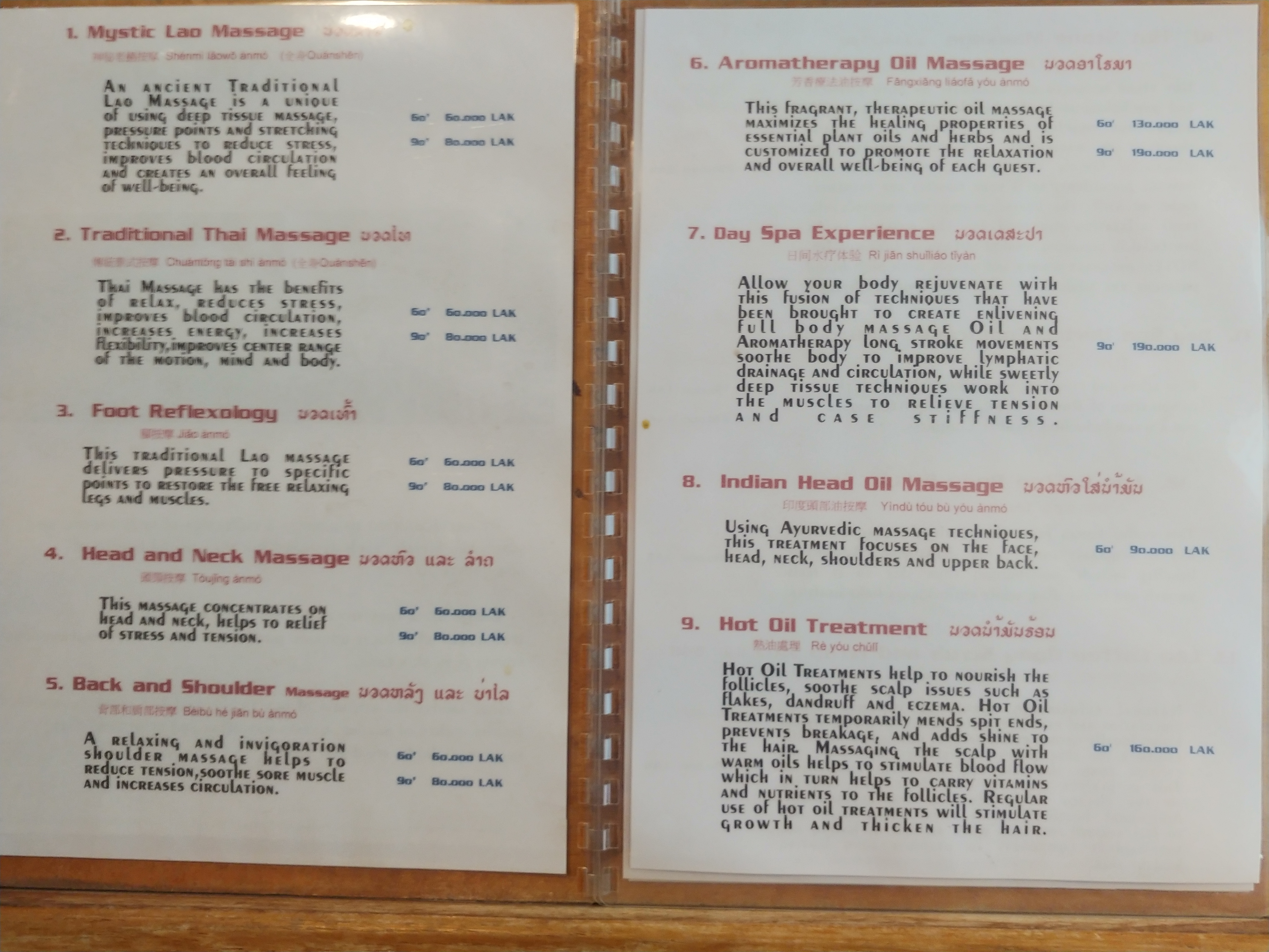 저희는 Mystic Lao Massage 였나? 1번 메뉴로 했습니다. 베리굿^^