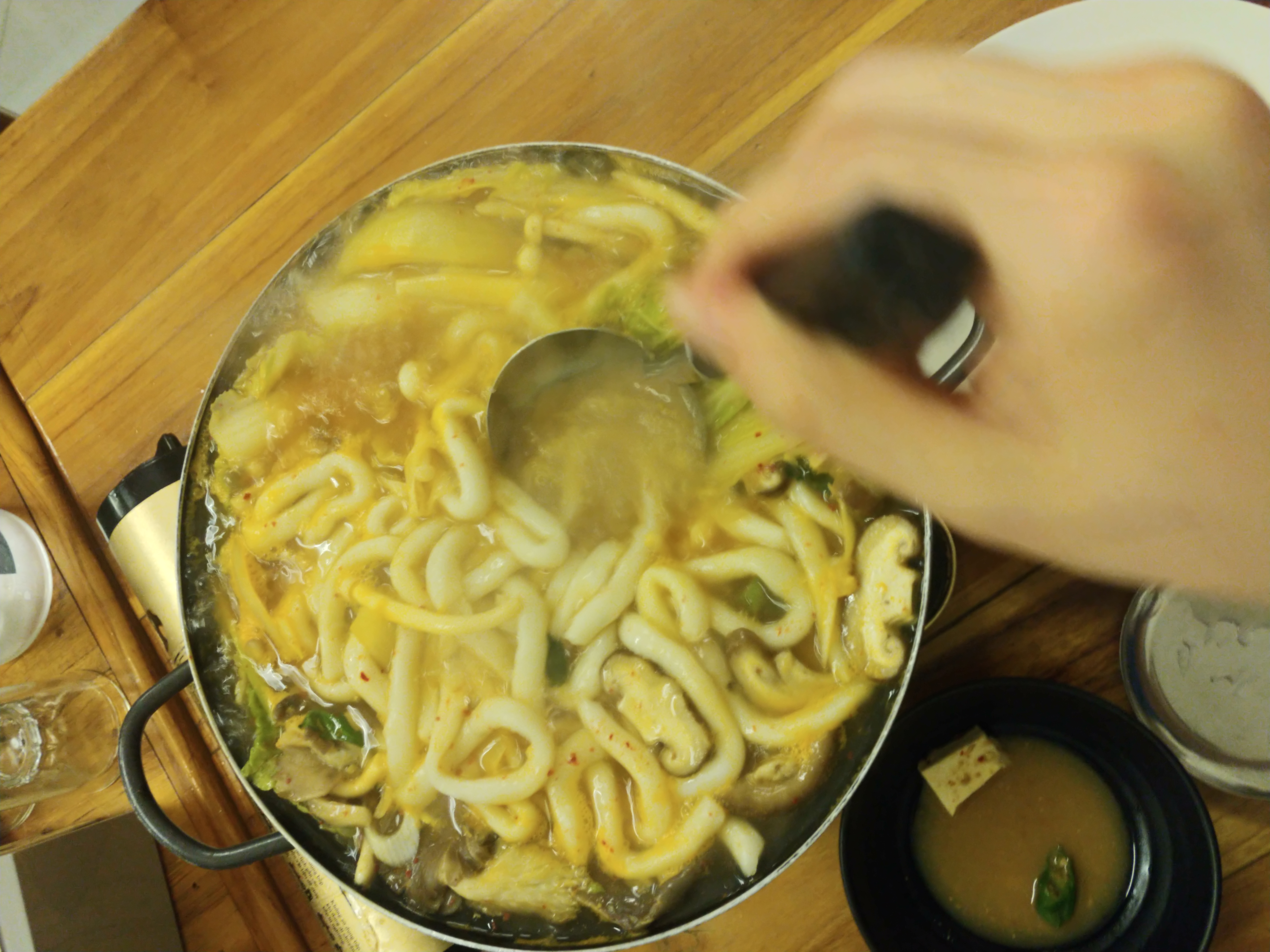 냄비 옆에 보이는 저건 국수가 아니고 떡입니다.