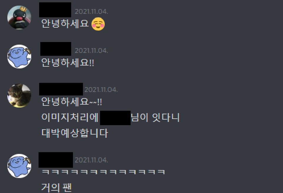 사실 처음에 엘리스 측에서 팀별로 디스코드 채널을 생성해주고, 메시지들을 보면서 "엇,,, 나만 초면인가,,?" 하면서 많이 쫄았습니다. 혼자 겉돌까봐 걱정을 좀 했었는데 역시 엘리스 레이서 분들은 모두 좋은 분들이셔서 편한 분위기에서 의견을 말할 수 있었습니다. (억지로 하는 학교 수업 팀플보다는 역시... 엘리스에서 하는 팀 프로젝트가.... 좋군요..)