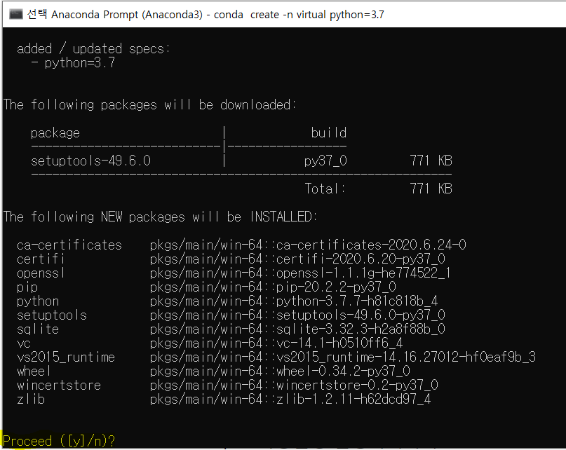 다들 가상환경 만들러 오신 거 맞죠? 그럼 y누르세요.