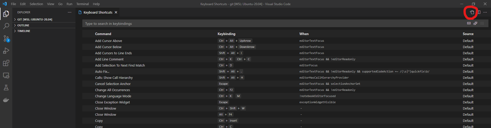 2. 우측 상단의 Open Keyboard Shortcuts(JSON) 클릭